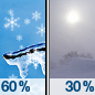 Temperature: 36°F Wind Speed: 25 mph Wind Direction: NNW Forecast: A chance of freezing rain between 8am and 9am, then snow likely and patchy blowing snow between 9am and 1pm. Mostly cloudy, with a high near 36. North northwest wind around 25 mph. Chance of precipitation is 60%. New snow accumulation of less than half an inch possible. Little or no ice accumulation expected. |