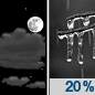 Temperature: 20°F Wind Speed: 9 mph Wind Direction: W Forecast: A slight chance of freezing rain after 5am. Partly cloudy, with a low around 20. |