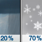 Temperature: 26°F Wind Speed: 8 to 13 mph Wind Direction: NNW Forecast: Snow showers likely. Mostly cloudy. Low around 26, with temperatures rising to around 28 overnight. North northwest wind 8 to 13 mph. Chance of precipitation is 60%. New snow accumulation of less than half an inch possible. |