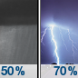 Temperature: 65°F Wind Speed: 5 mph Wind Direction: S Forecast: A chance of rain showers before midnight, then showers and thunderstorms likely. Cloudy, with a low around 65. South wind around 5 mph. Chance of precipitation is 70%. |