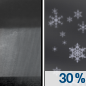 Temperature: 32°F Wind Speed: 6 to 10 mph Wind Direction: W Forecast: Snow. Mostly cloudy, with a high near 32. Chance of precipitation is 80%. |