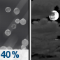 Temperature: 21°F Wind Speed: 9 to 13 mph Wind Direction: W Forecast: A chance of snow showers. Partly sunny, with a high near 21. Chance of precipitation is 40%. |
