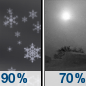 Temperature: -4°F Wind Speed: 5 to 10 mph Wind Direction: NW Forecast: A chance of snow. Mostly cloudy, with a low around -4. Northwest wind 5 to 10 mph. Chance of precipitation is 30%. |