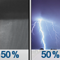 Temperature: 61°F Wind Speed: 8 to 12 mph Wind Direction: NW Forecast: A chance of showers and thunderstorms. Partly sunny, with a high near 61. Chance of precipitation is 50%. |