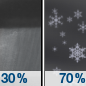 Temperature: 27°F Wind Speed: 15 to 25 mph Wind Direction: W Forecast: A chance of rain showers between 10pm and 1am, then a chance of rain and snow showers between 1am and 2am, then a chance of rain and snow showers. Mostly cloudy, with a low around 27. West wind 15 to 25 mph, with gusts as high as 45 mph. Chance of precipitation is 70%. New snow accumulation of less than half an inch possible. |
