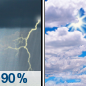 Temperature: 63°F Wind Speed: 15 mph Wind Direction: W Forecast: Showers and thunderstorms before noon. Mostly cloudy. High near 63, with temperatures falling to around 47 in the afternoon. West wind around 15 mph, with gusts as high as 30 mph. Chance of precipitation is 90%. New rainfall amounts between a quarter and half of an inch possible. |
