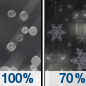Temperature: 32°F Wind Speed: 5 mph Wind Direction: E Forecast: Sleet and a slight chance of rain and snow before 8pm, then sleet and rain and snow between 8pm and 9pm, then rain and a slight chance of sleet. Cloudy, with a low around 32. East wind around 5 mph. Chance of precipitation is 100%. New snow accumulation of less than half an inch possible. |