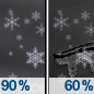 Temperature: 36°F Wind Speed: 5 to 9 mph Wind Direction: NE Forecast: A slight chance of snow showers before 7am, then a chance of snow. Mostly cloudy, with a high near 36. Chance of precipitation is 50%. |