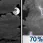 Temperature: 73°F Wind Speed: 10 mph Wind Direction: W Forecast: A chance of showers and thunderstorms before 1pm, then showers and thunderstorms likely. Mostly cloudy. High near 73, with temperatures falling to around 70 in the afternoon. West wind around 10 mph. Chance of precipitation is 70%. New rainfall amounts between a tenth and quarter of an inch possible. |