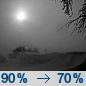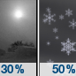 Temperature: 14°F Wind Speed: 12 mph Wind Direction: W Forecast: A chance of snow showers. Mostly cloudy, with a low around 14. Chance of precipitation is 30%. |